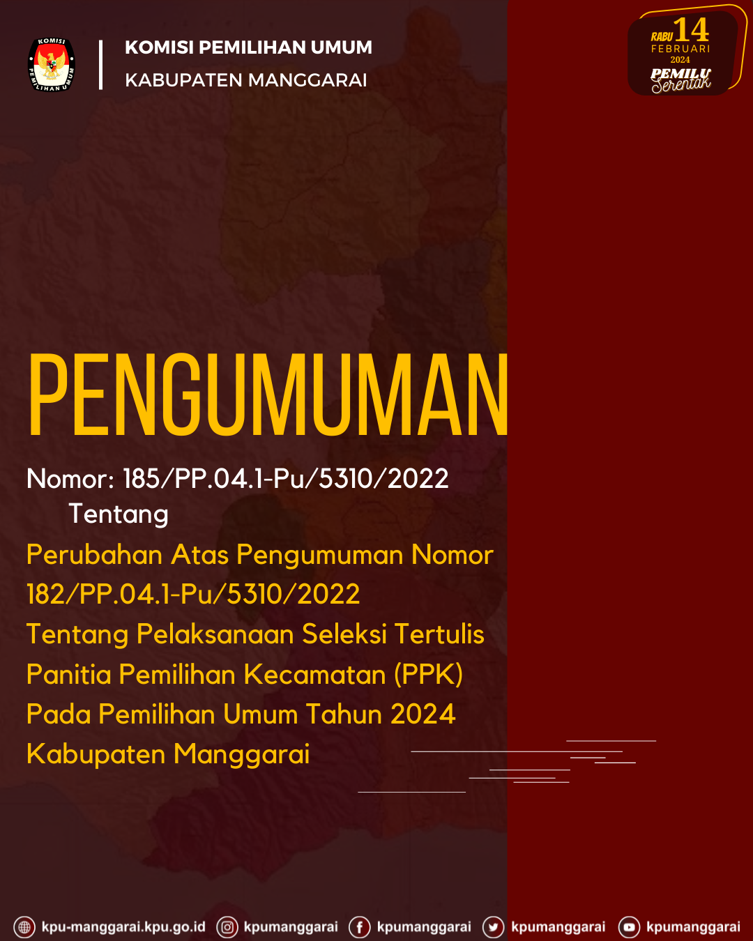 https://kab-manggarai.kpu.go.id/public/kab-manggarai/dmdocument/1670221647PENGUMUMAN NOMOR 185 PERUBAHAN ATAS PENGUMUMAN 182.pdf