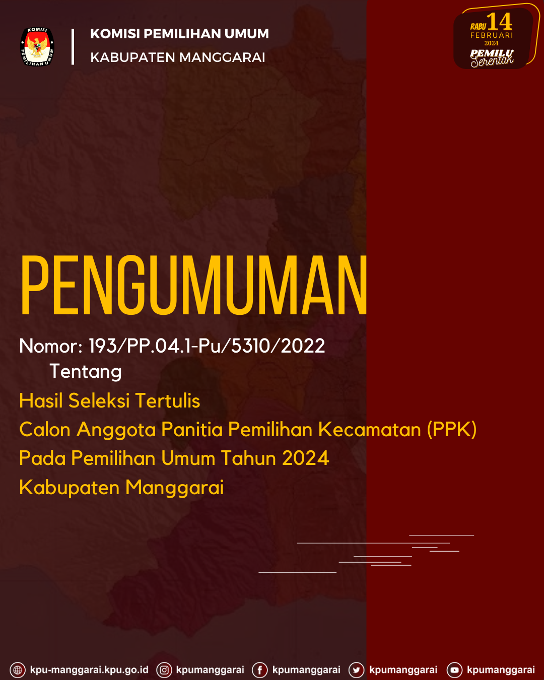 https://kab-manggarai.kpu.go.id/public/kab-manggarai/dmdocument/1670494194Pengumuman Nomor 193 tentang Hasil Seleksi Tertulis Calon Anggota PPK_compressed.pdf
